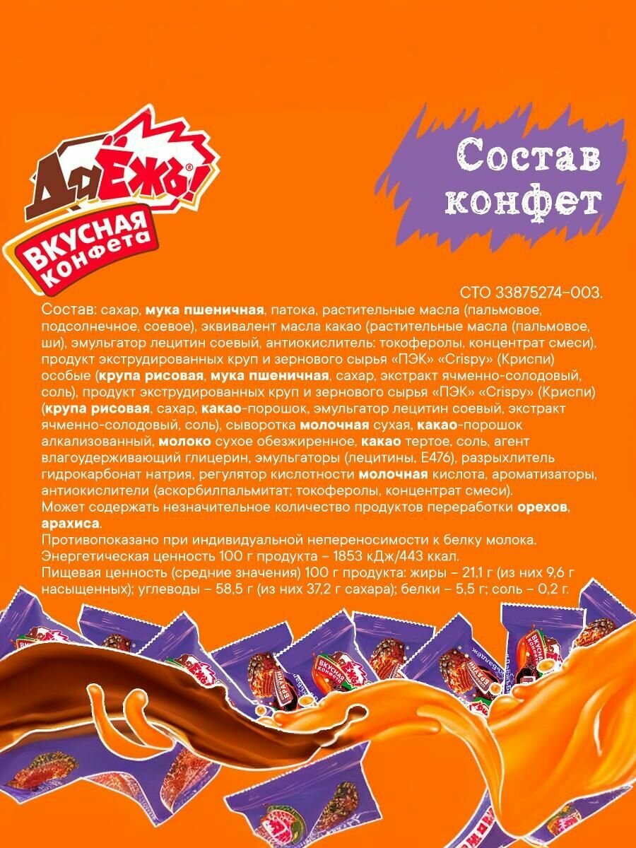 Конфеты ДаЕжь с карамелью, арахисом и криспи 1,5кг уп