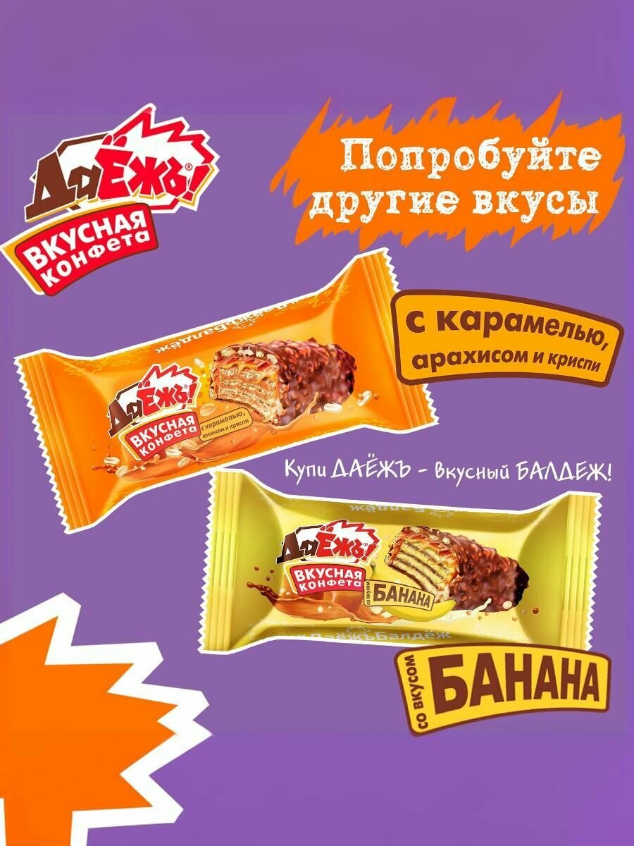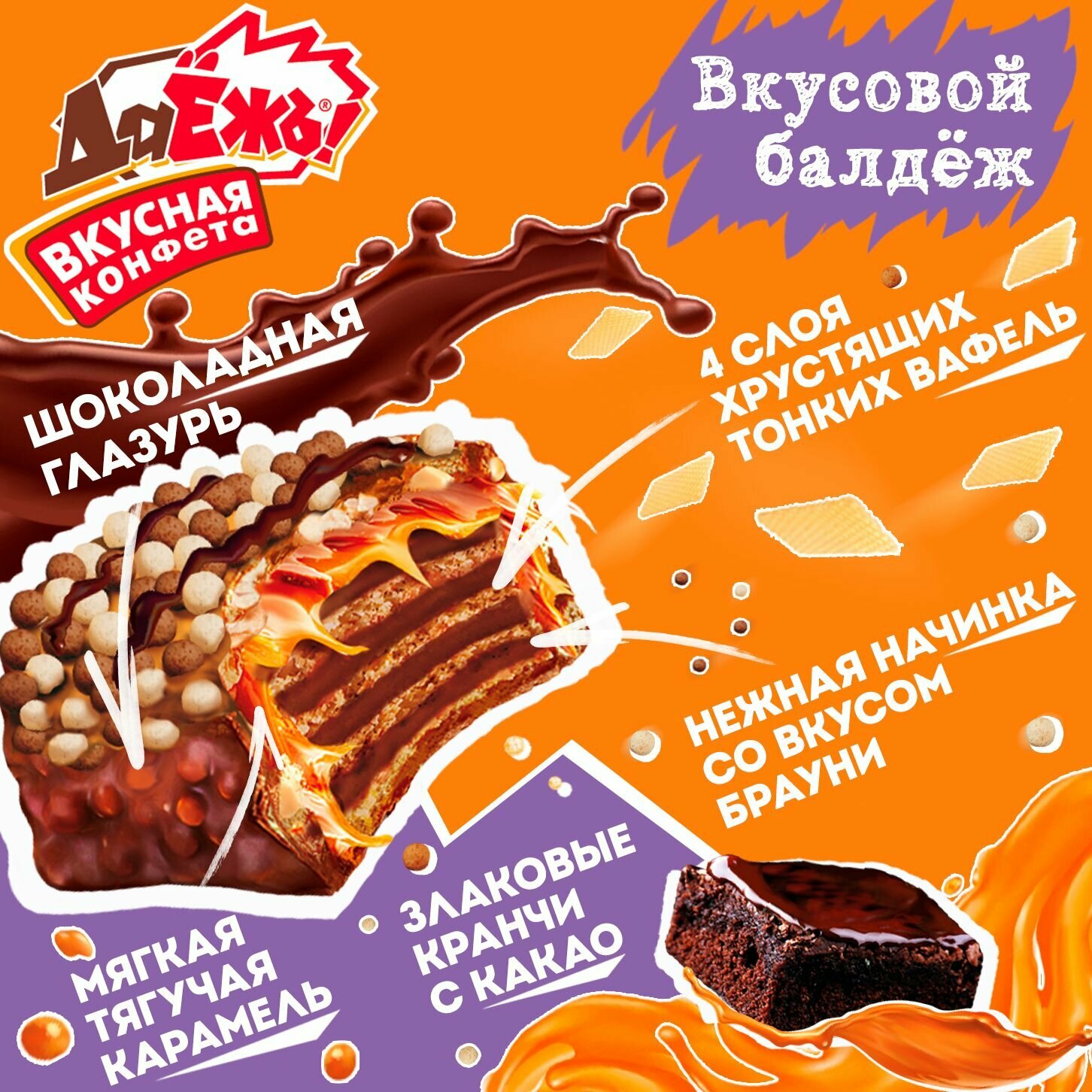 Конфеты вафельные Даёжъ с карамелью, арахисом и криспи, в шоколаде, коробка 1.5 кг