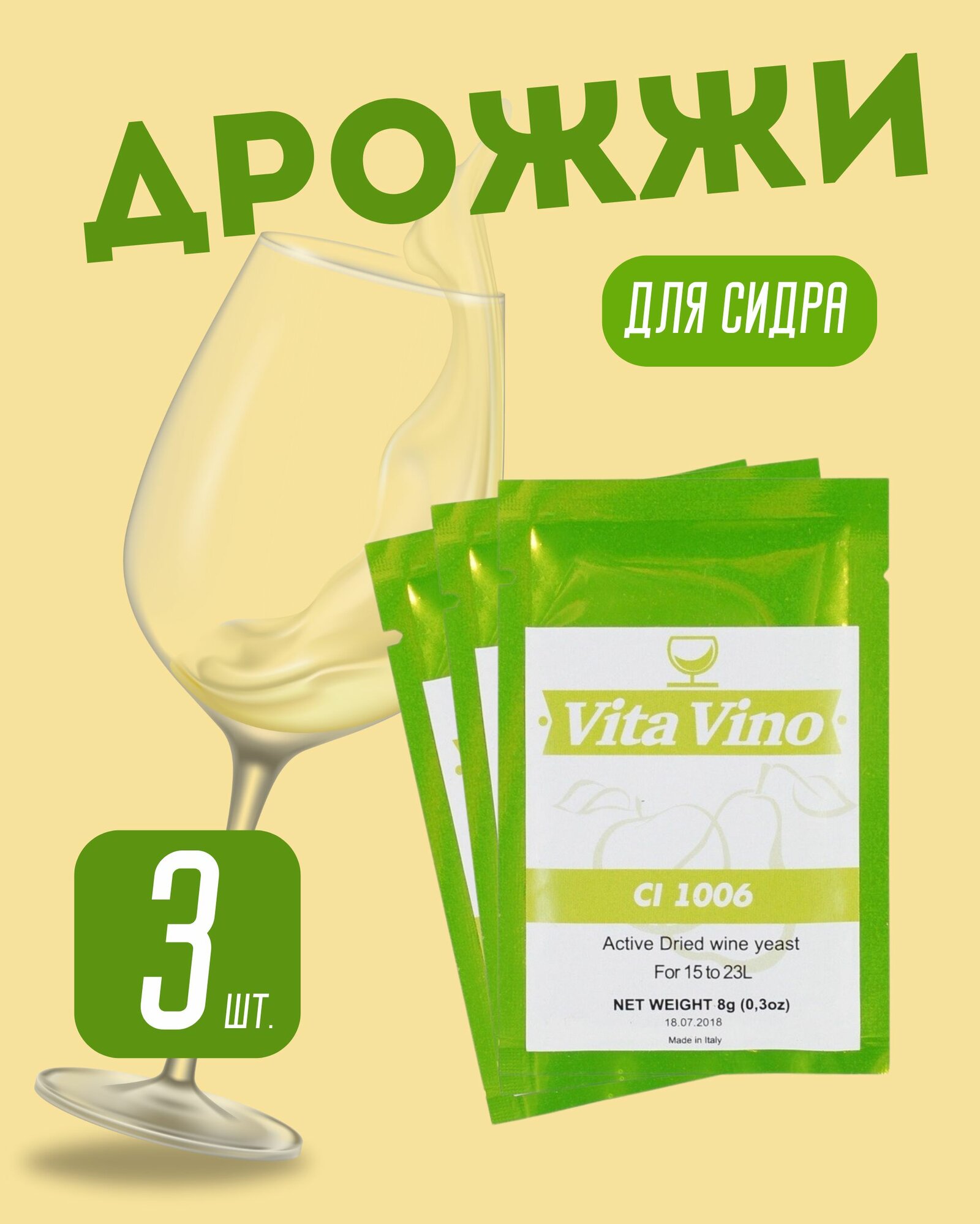 Винные дрожжи Vita Vino CL-1006 для сидра из яблок и груш - 3 упаковки