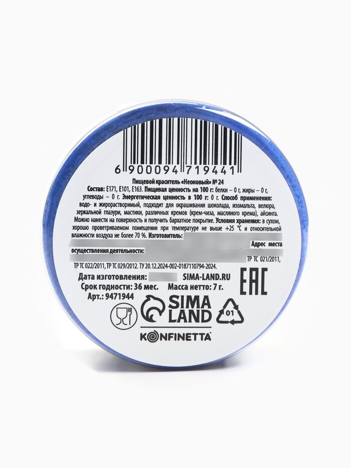 Краситель пищевой неоновый KONFINETTA, синий, 7 г. интересное:
