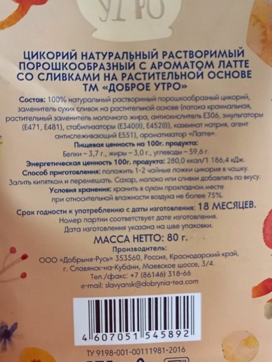 Ниже Вы можете прочитать отзывы на Доброе утро Цикорий - вкус латте 3 штуки по 80г, ознакомится с подробными характеристиками, посмотреть интересные обзоры и фотографии на Доброе утро Цикорий - вкус латте 3 штуки по 80г.