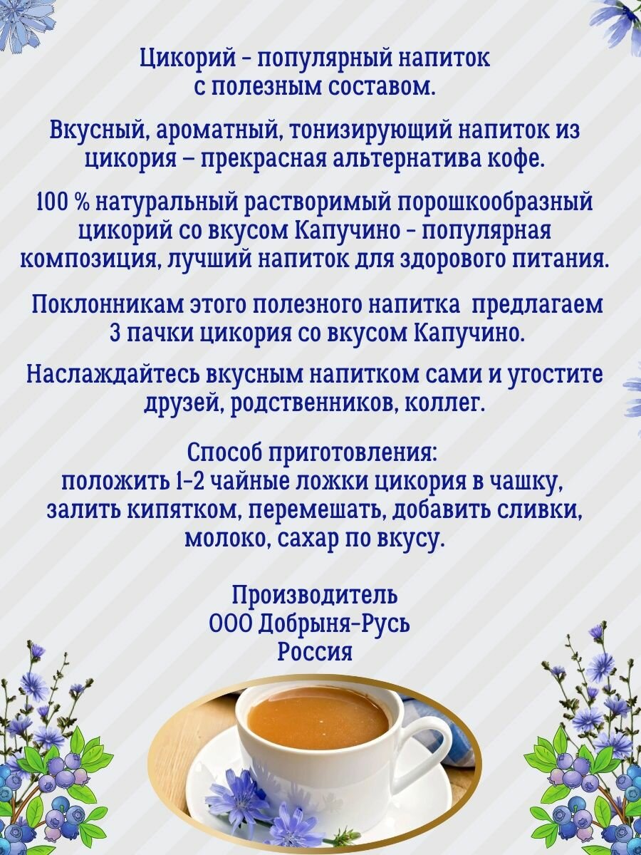 Купить Доброе утро Цикорий натуральный - вкус капучино 3 штуки по 80гр.