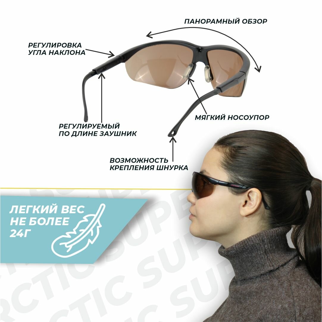 Очки защитные РОСОМЗ О85 ARCTIC, очки солнцезащитные, индивидуальная регулировка