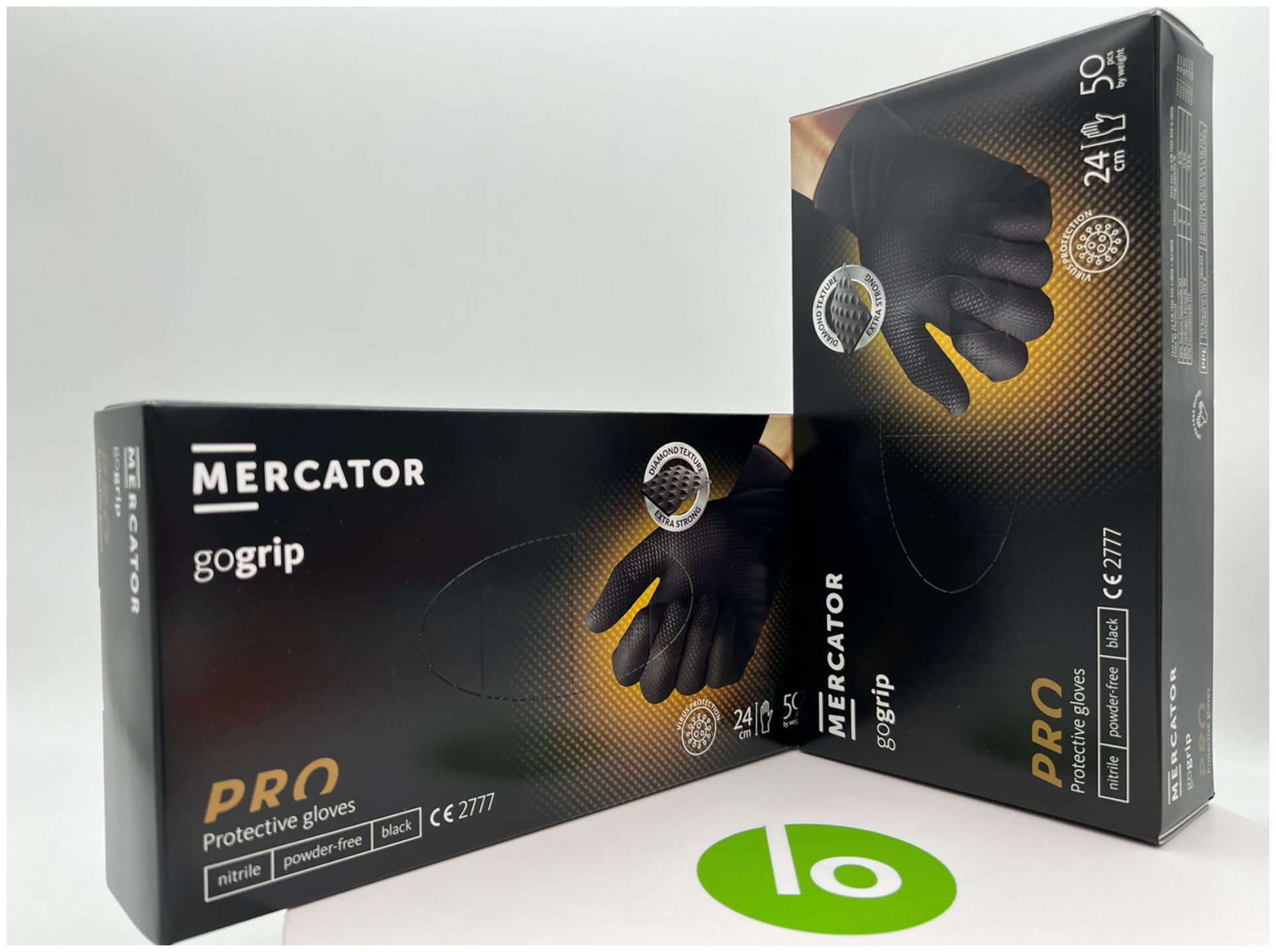 Одноразовые перчатки Mercator "GoGrip", черные, размер L, 25 пар