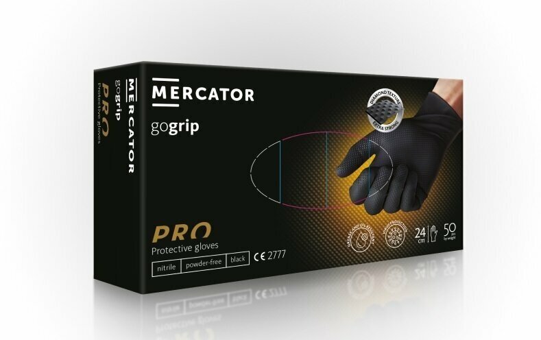 Перчатки Mercator одноразовые нитрил GOGRIP BLACK цв. черный (25 пар/уп) р. L, ПС
