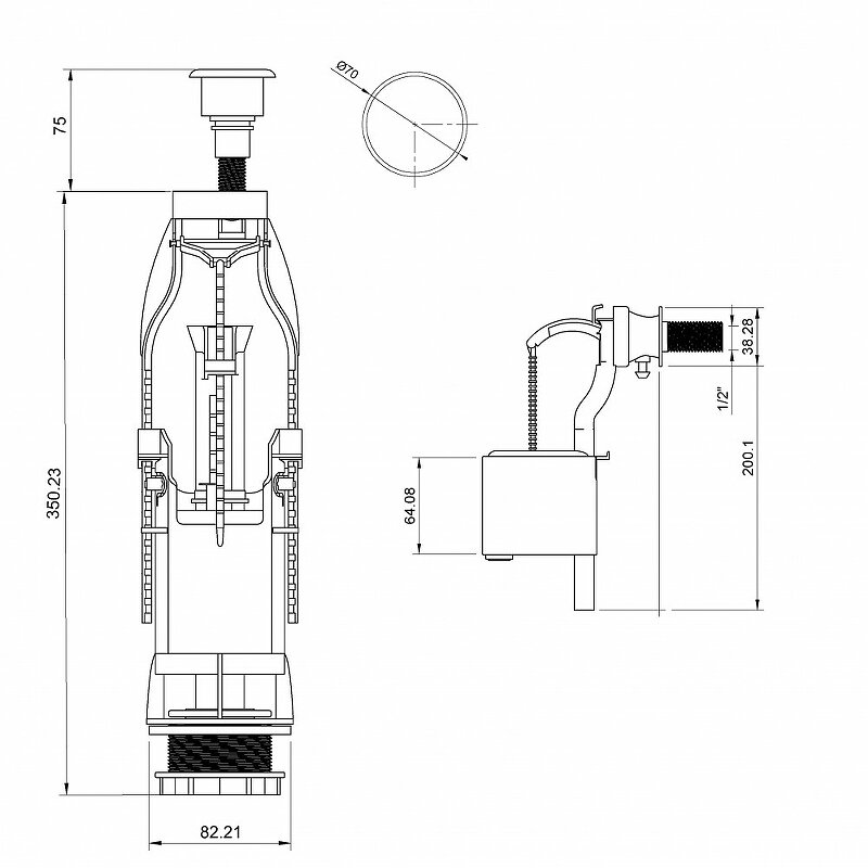 Арматура для бачка сливная/наливная нижнее подключение кнопка белый 1/реж универсал РБМ АС-17.1