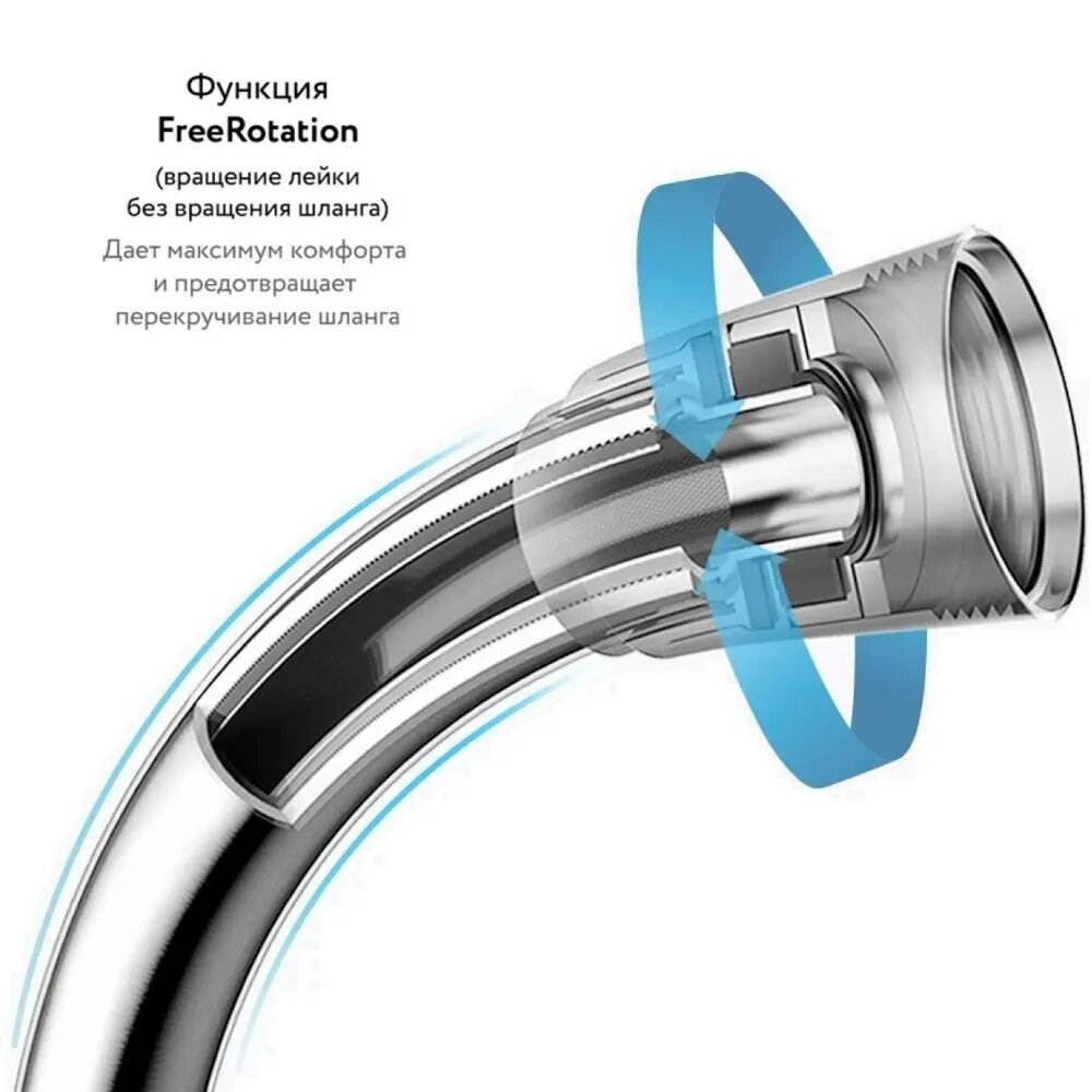 Шланг для душа армированный 1,6м усиленный/душевой/лейка вращается без перекручиваний