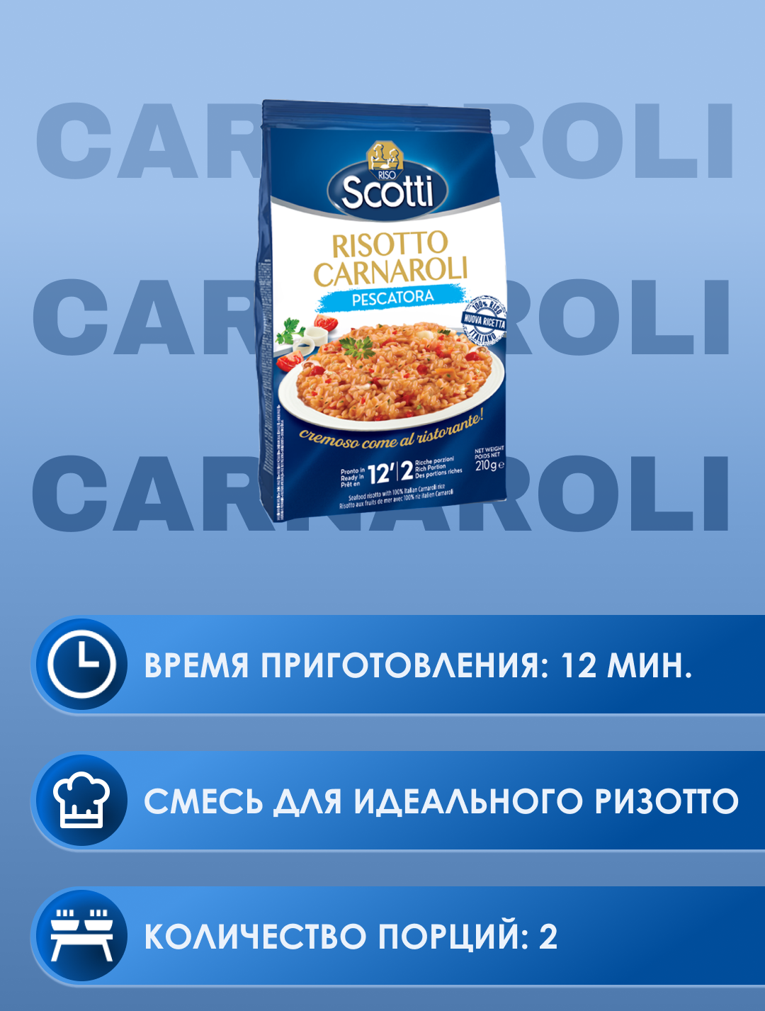 Рис Riso Scotti "Carnaroli", Ризотто с морепродуктами, 210 г интересное: