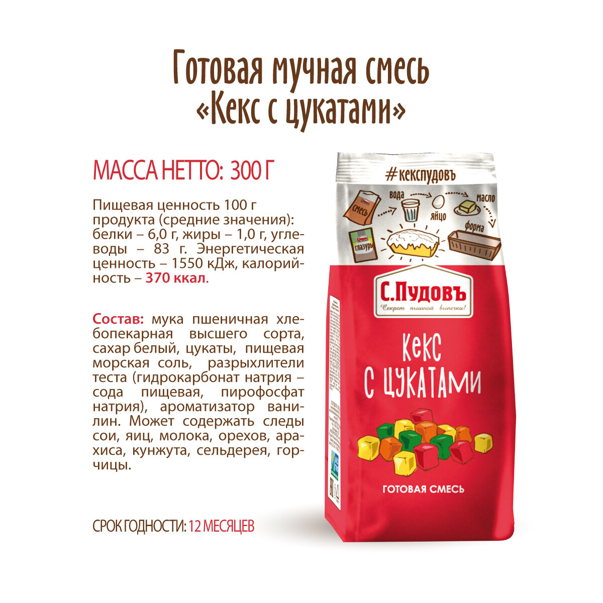 Смесь для выпечки кекс "С цукатами", С. Пудовъ, 300 г интересное: