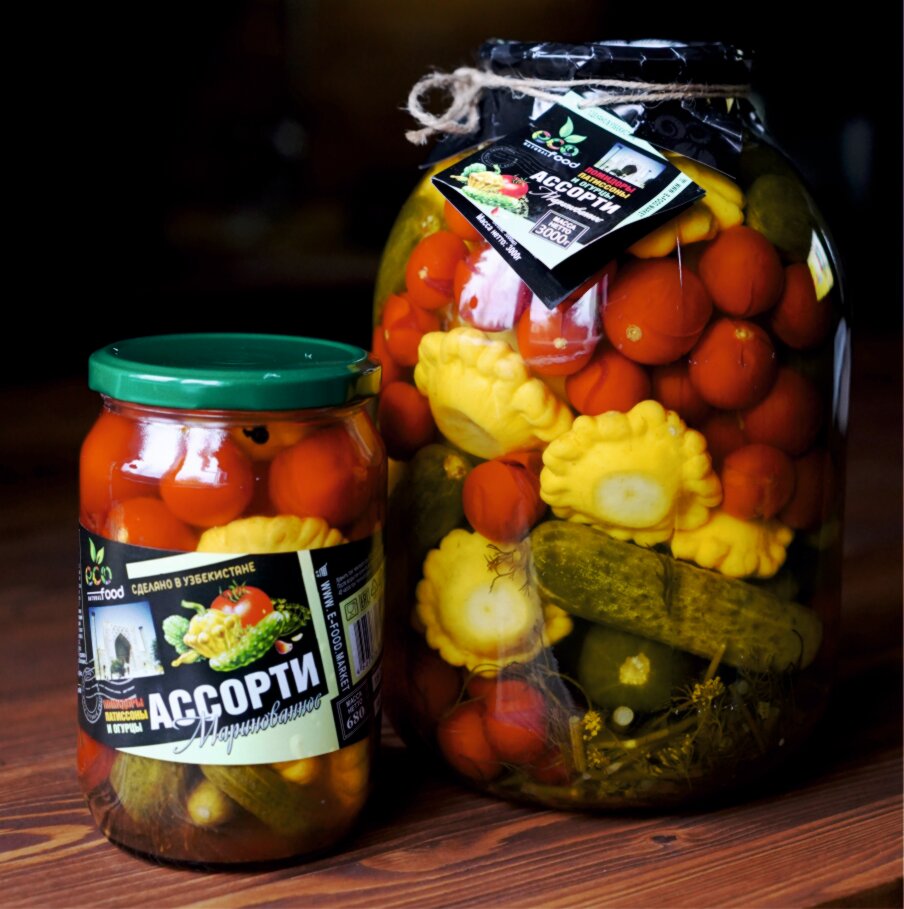 Ассорти (помидоры, патиссоны и огурцы) маринованное 3000г, Узбекистан интересное: