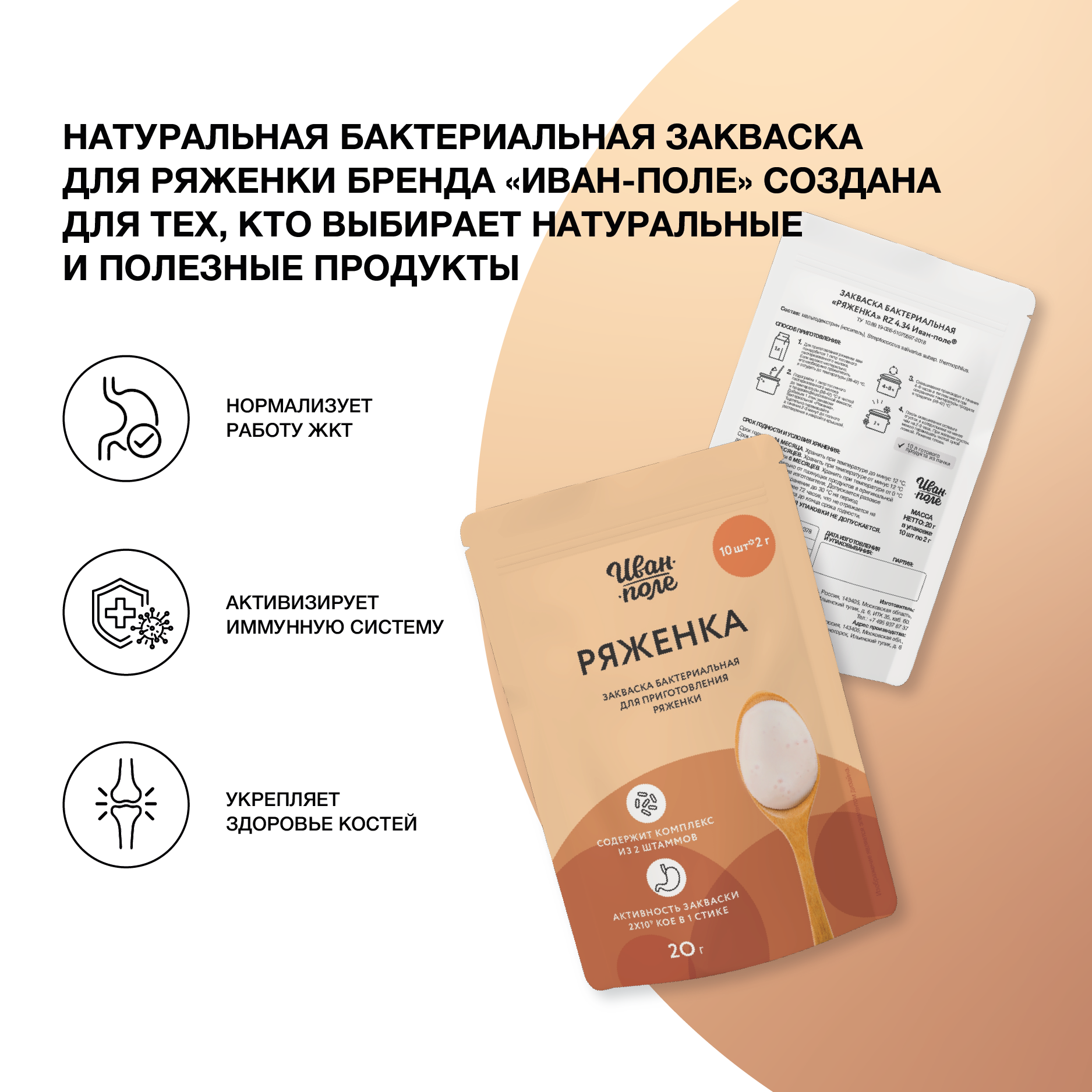 Закваска для Ряженки Иван-поле, 10 стиков по 2 г, 10 литров готового продукта интересное: