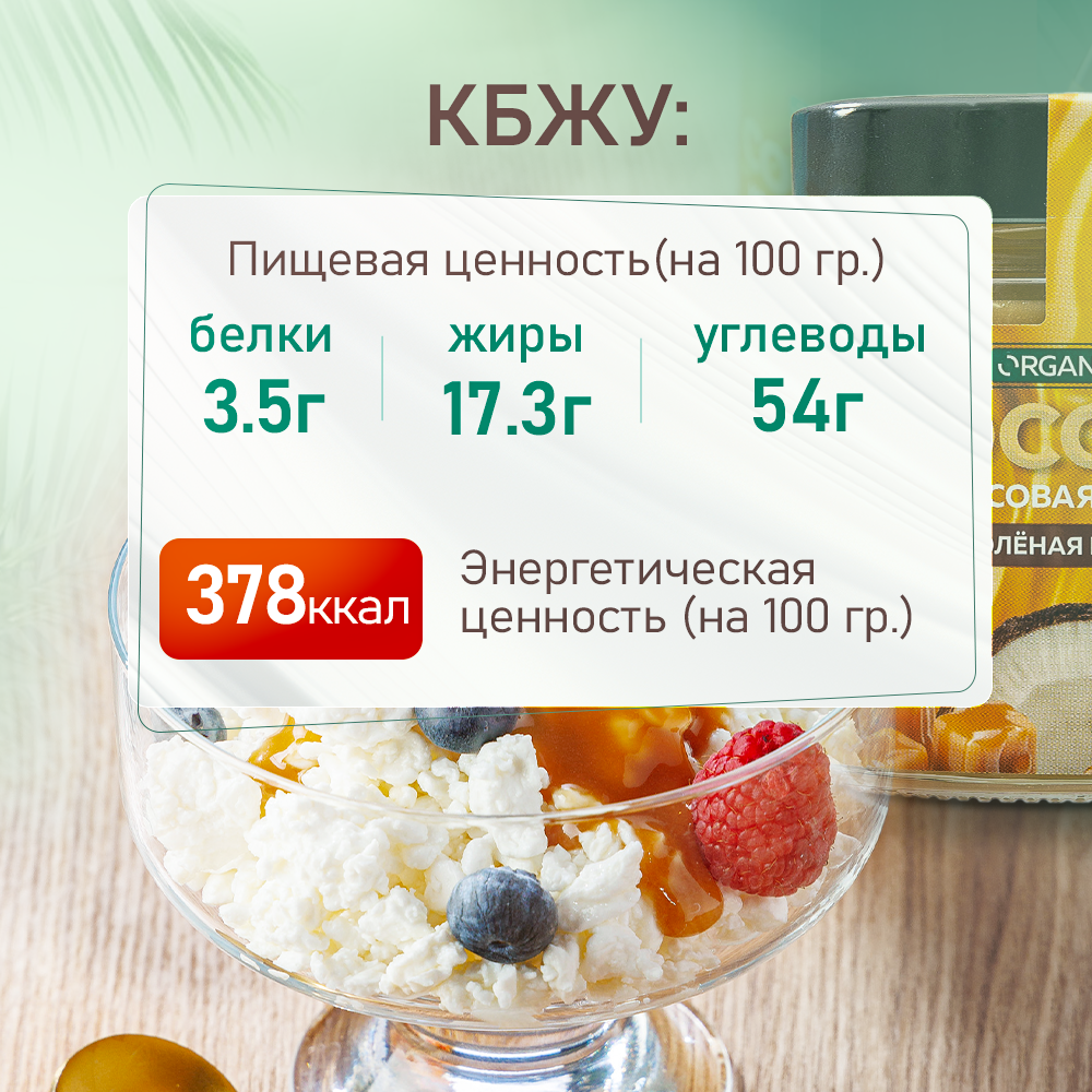 Кокосовая сгущенка ORGANIC LAB без сахара со вкусом солёной карамели, веганская, 220гр интересное: