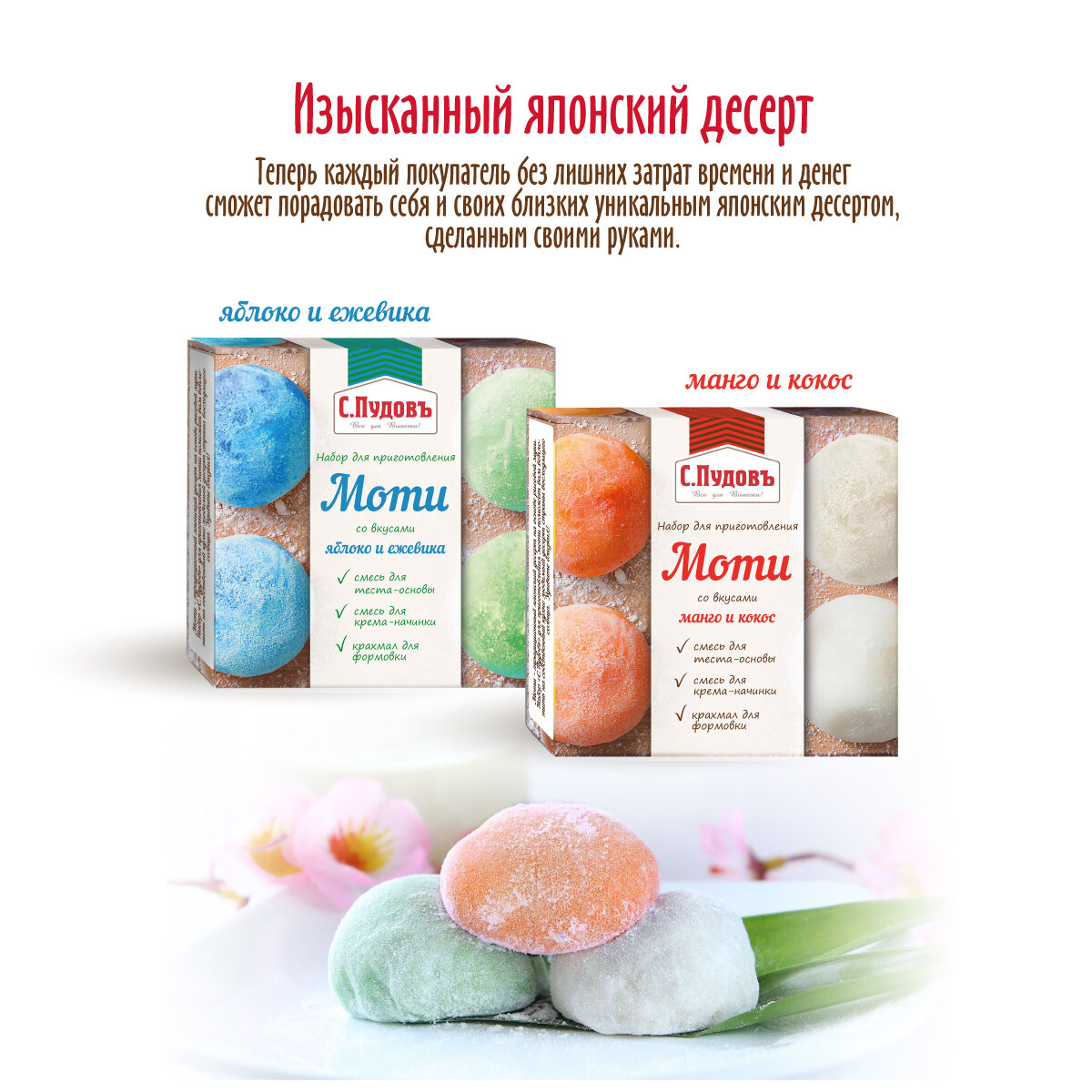 Набор для приготовления пирожных "Моти со вкусом манго-кокос" С. Пудовъ, 225 г интересное: