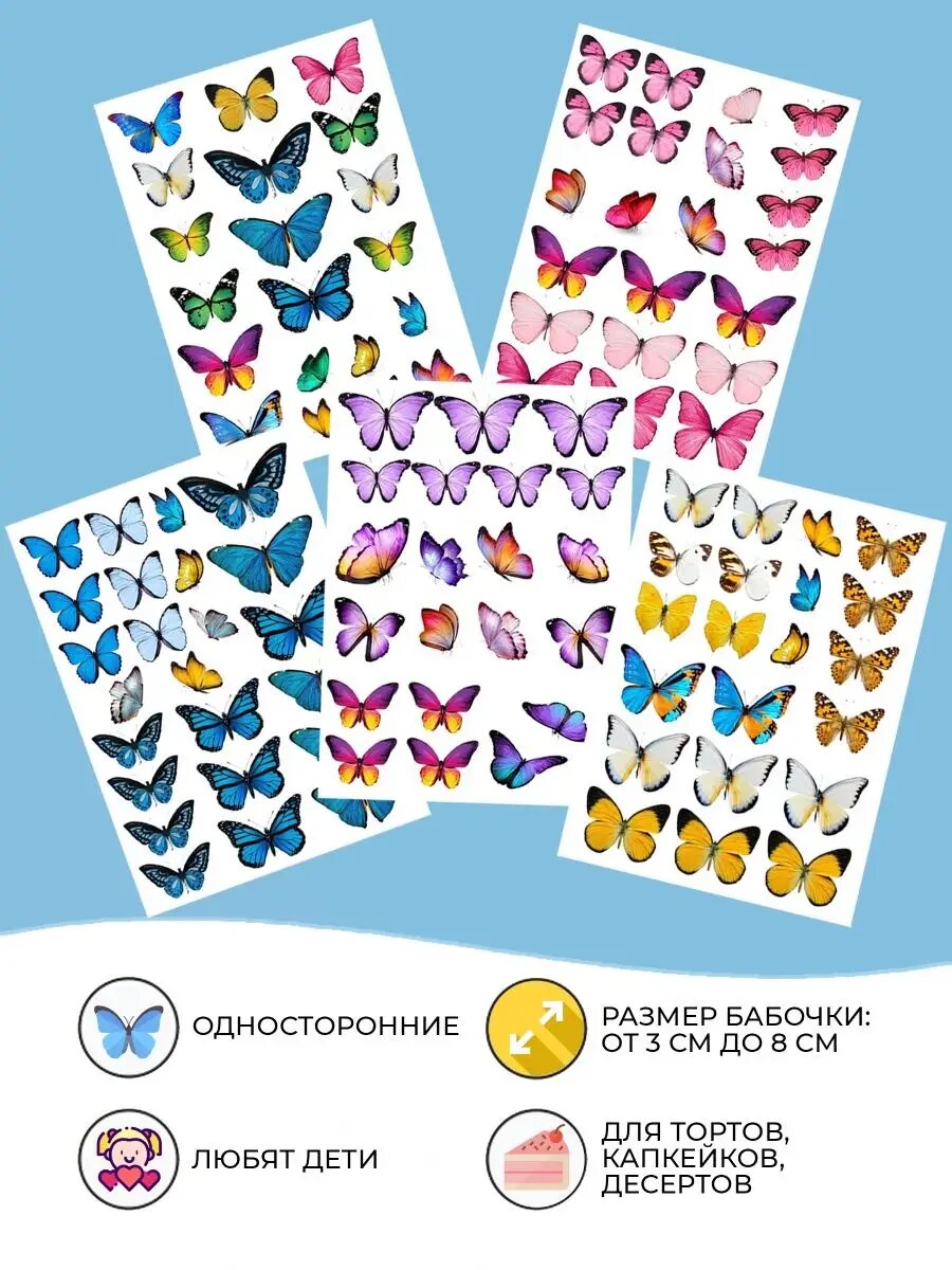Вафельные листы с бабочками кондитерские 5шт интересное: