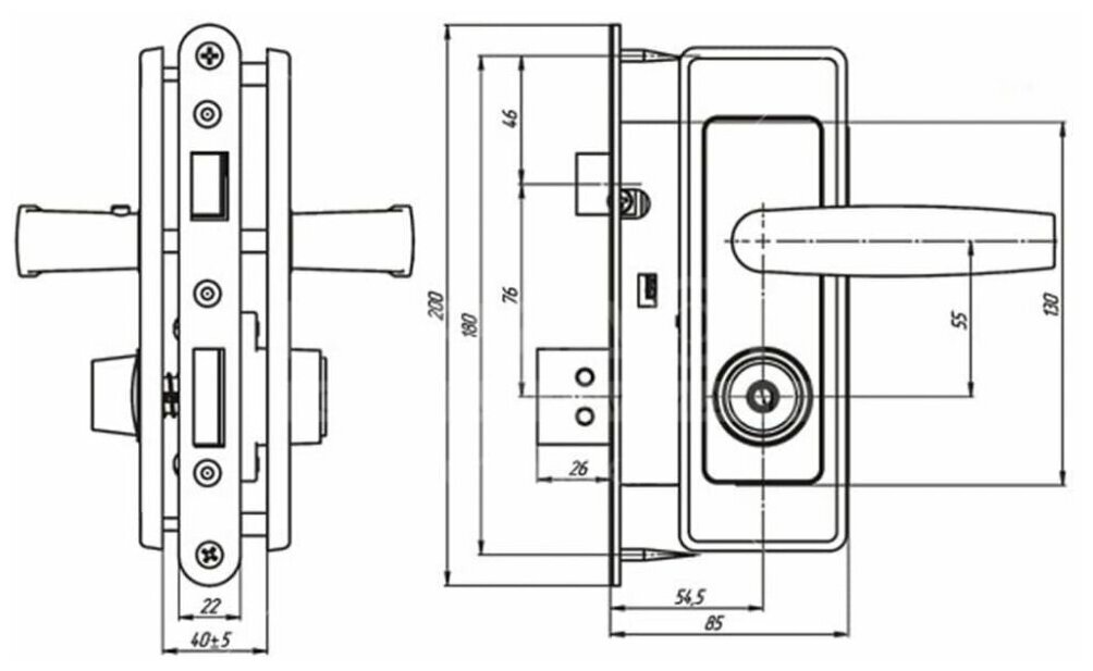 Замок врезной цилиндровый с защёлкой в комплекте с ручкой Барановичи ШО-25 Белоруссия