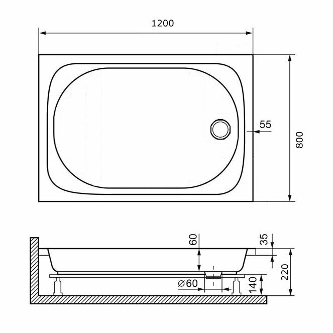 Акриловый поддон для душа RGW Acrylic Lux/Tn 80x120x22 без сифона