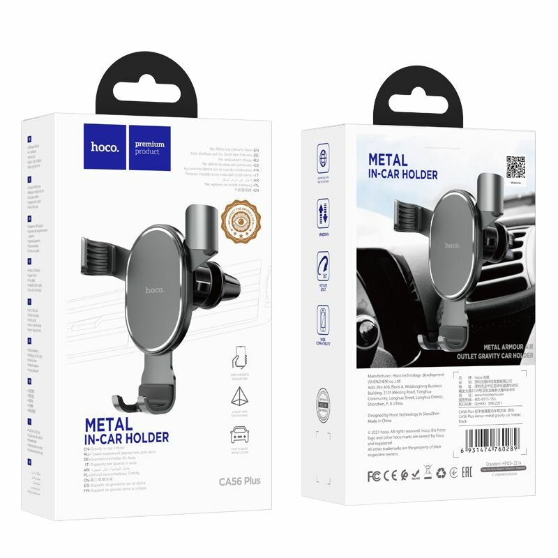 Купить Автомобильный держатель HOCO CA56 Plus Armor Metal, 60-90мм, черный, на воздуховод