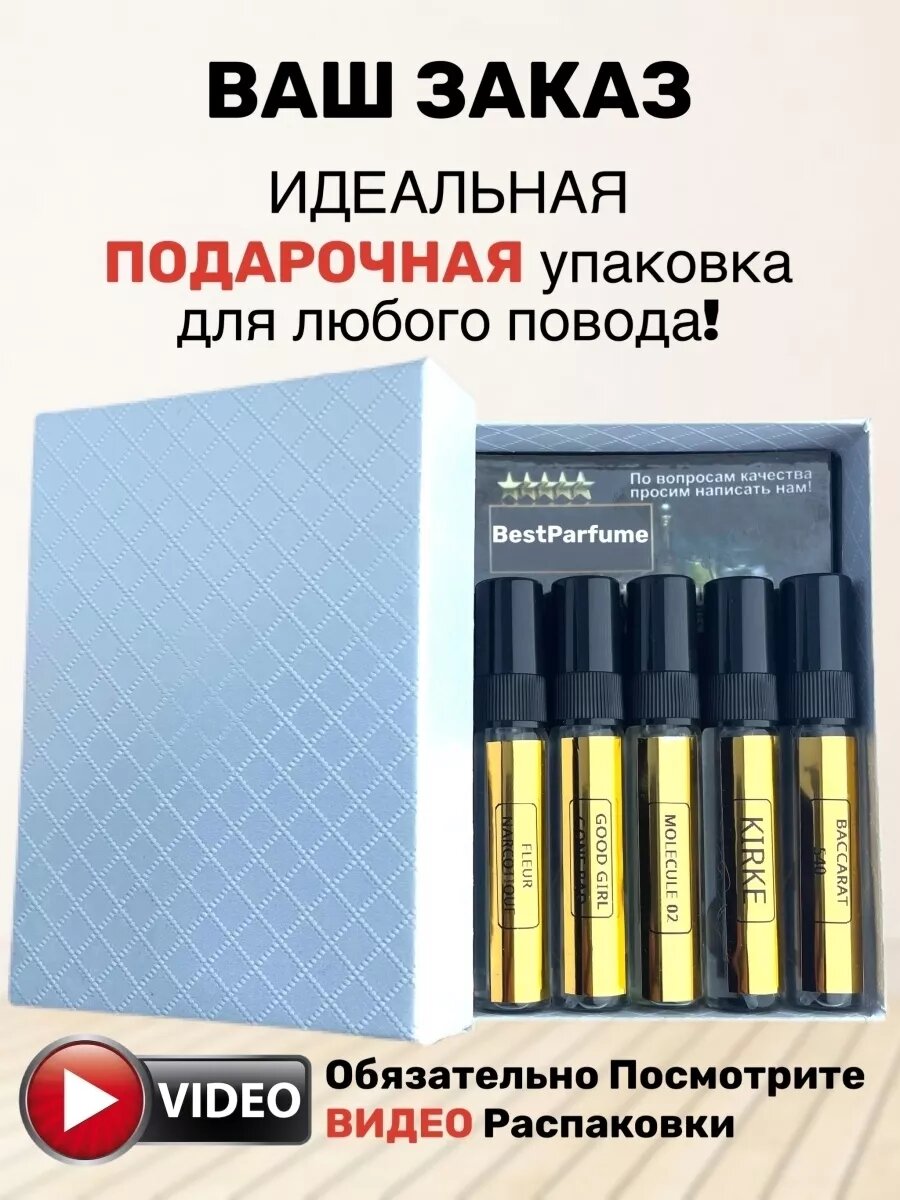Набор духов 5 шт, пробники по мотивам Fleur Narcotique, Baccarat 540, Kirke, Molecule 02, Good Girl