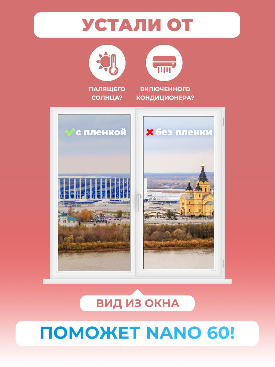 Пленка атермальная для окон NANO 60. Пленка солнцезащитная на окно размер 100х300 см