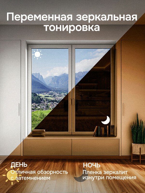 Зеркальная пленка на окно Grey 15. Пленка самоклеющаяся на окна 100х300см