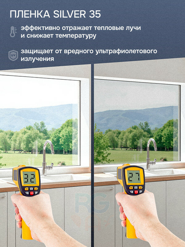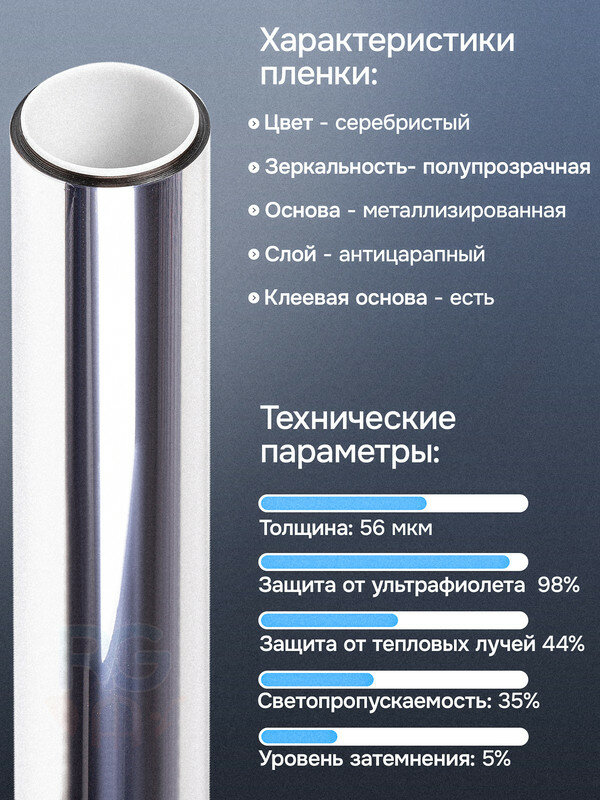 Пленка для окон солнцезащитная Silver 35 Reton Group. Пленка самоклеющаяся на окна (серебристая) - 100х250 см