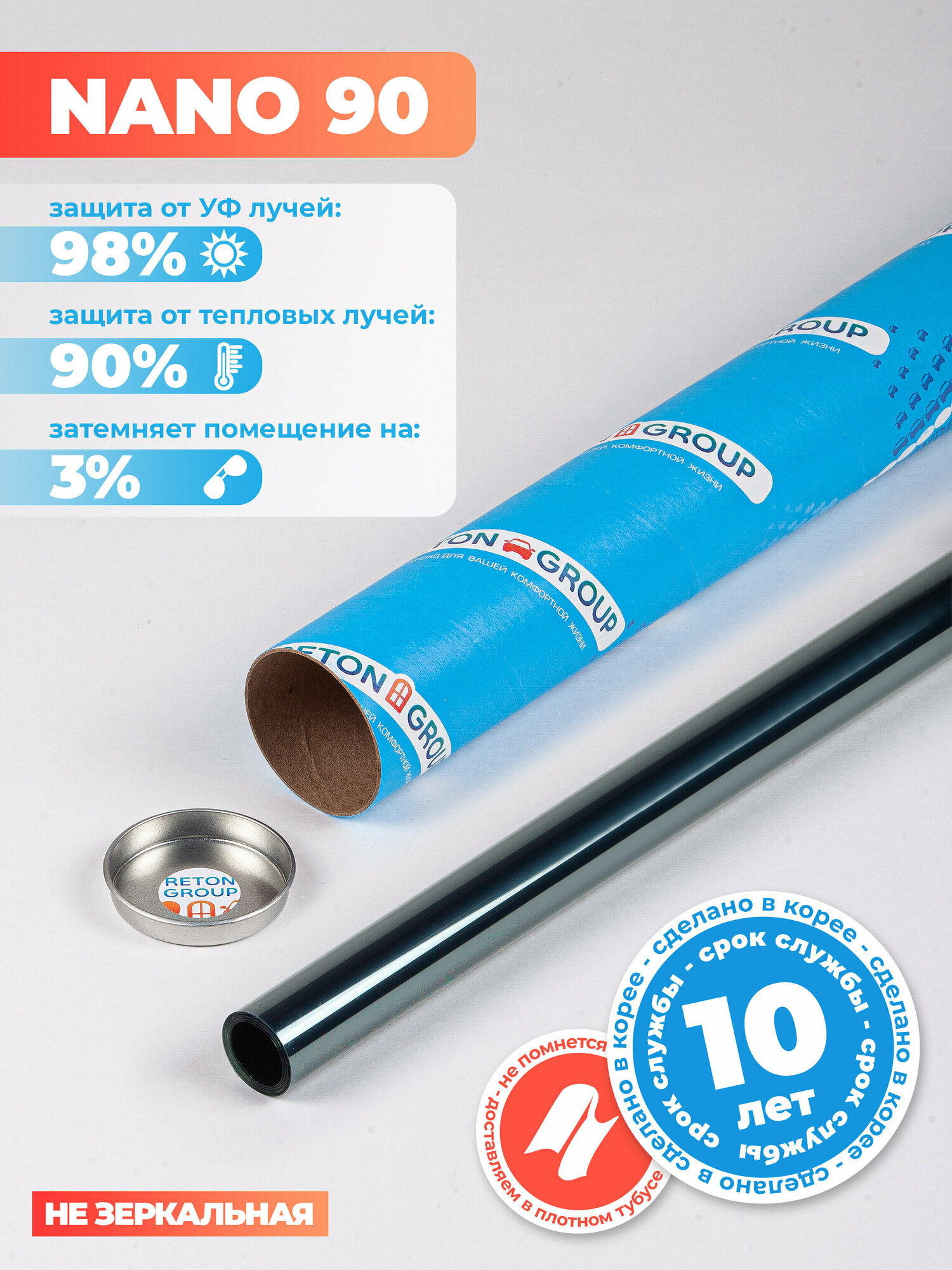 Атермальная тонировка Nano 90 Reton Group. Атермальная пленка для авто 100х152 см