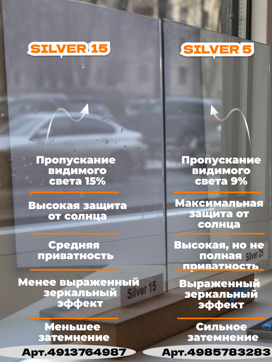Купить Зеркальная солнцезащитная пленка Silver 15, 152х100 см