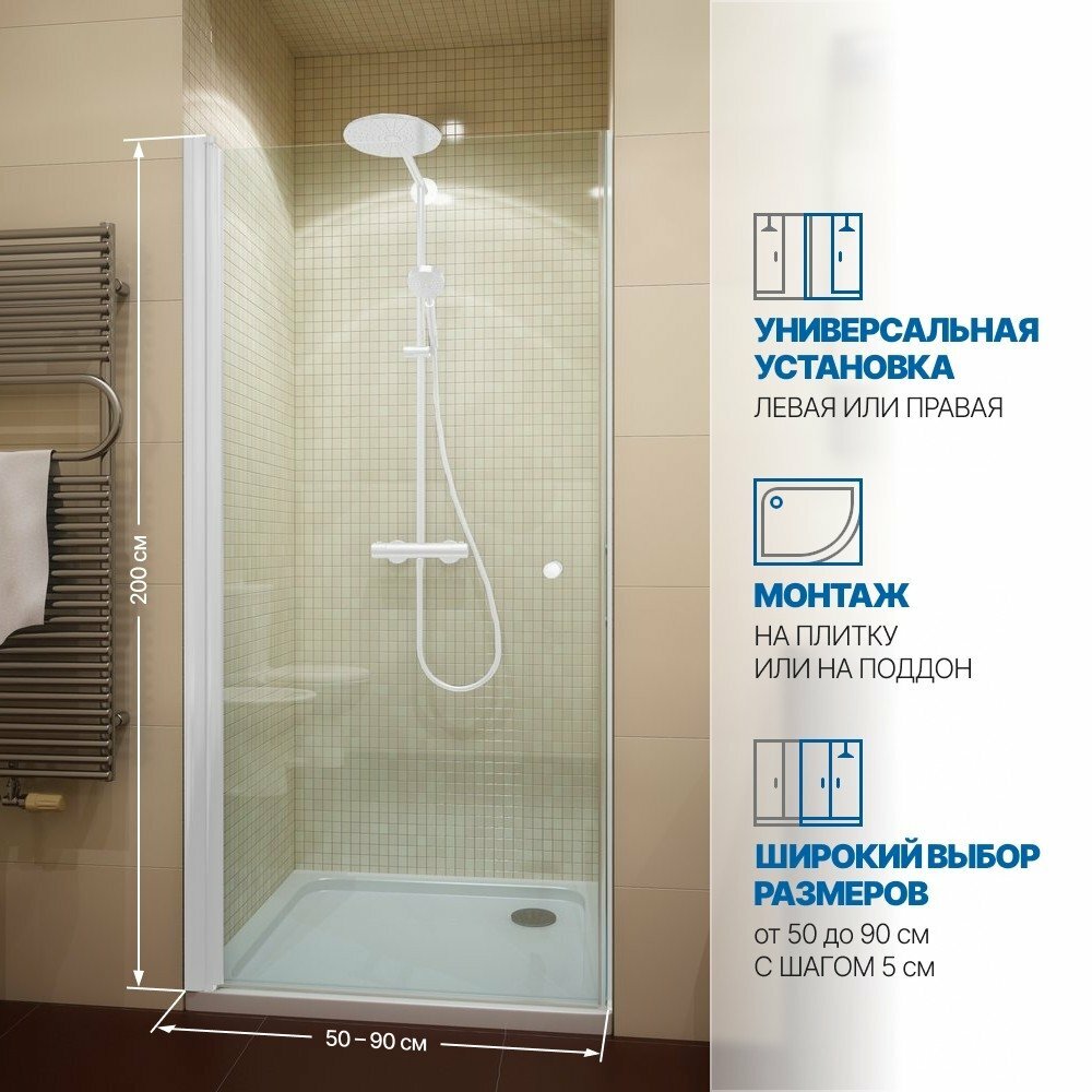 Дверь в душевую нишу GWMPKB020D601 50x200 см, цвет фурнитуры белый матовый, цвет стекла бесцветный, стекло закаленное 6 мм, открывание двери левое / правое