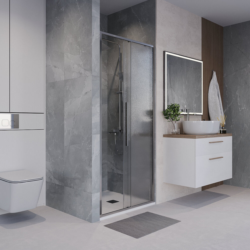 Душевая дверь в нишу Niagara Nova 90x195 NG-65-9CH стекло шиншилла, профиль хром