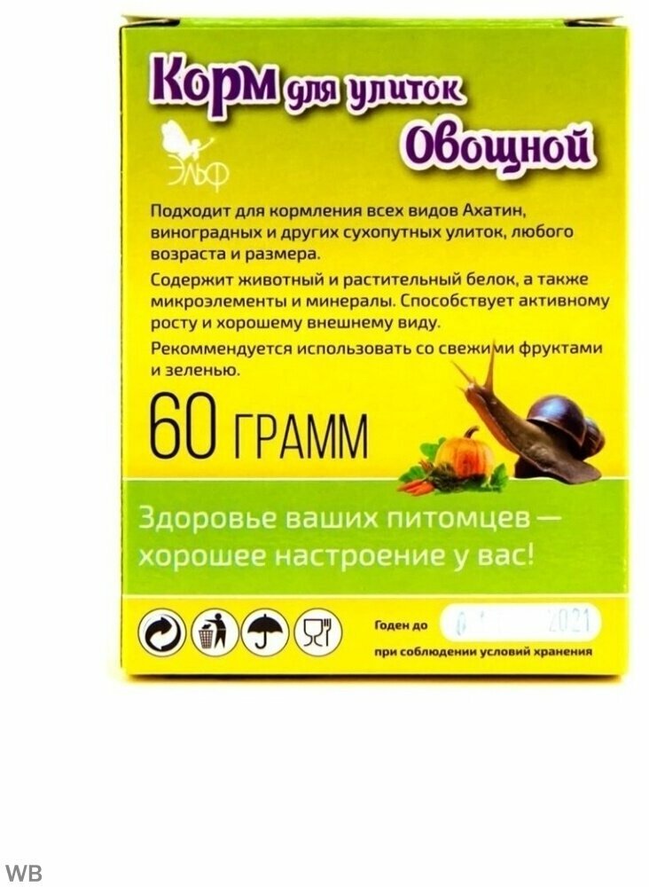 Корм для улиток Эльф "Овощной", повседневный, коробка 60 г
