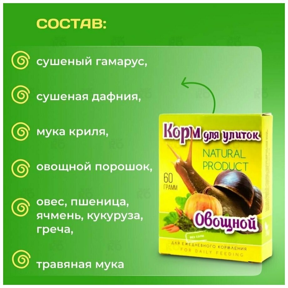 Корм повседневный "Овощной" для улиток, 60 г интересное: