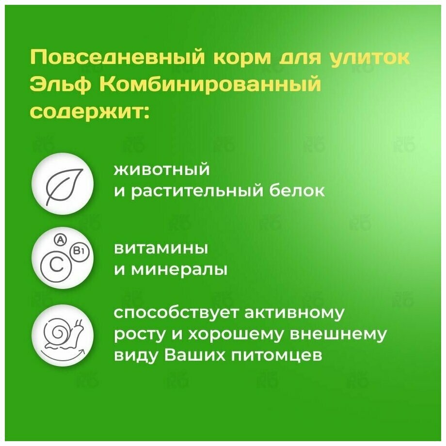 Эльф: Корм для улиток овощной: гаммарус, дафния, криль, овощной порошок, крупы, ВТМ, 60 гр