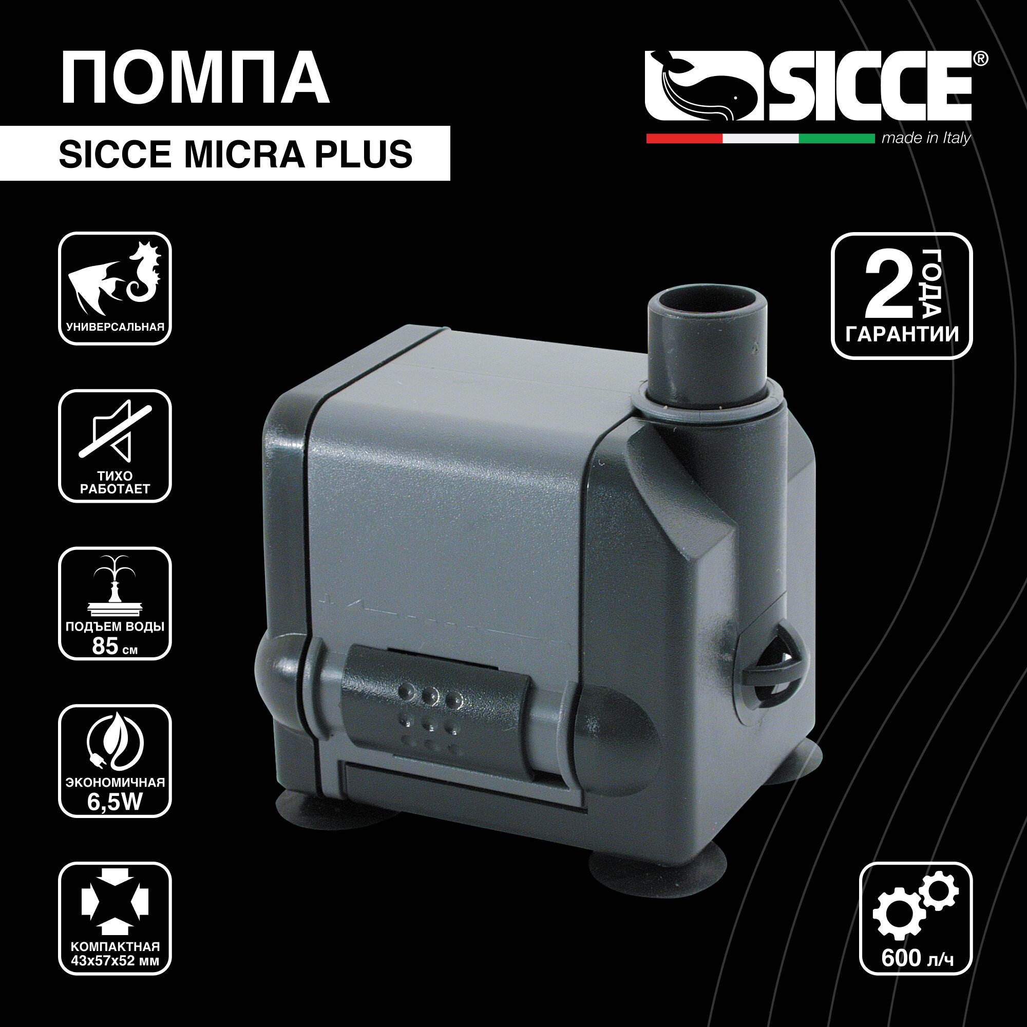 Помпа SICCE MICRA PLUS, 600л/ч, подъем 85 см, 43х57хh52 мм интересное: