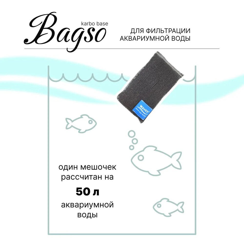 WAVES "Bagso karbo base" 2 сетчатых мешочка с активированным углем - наполнитель для аквариумного фильтра, 15х8,5 см