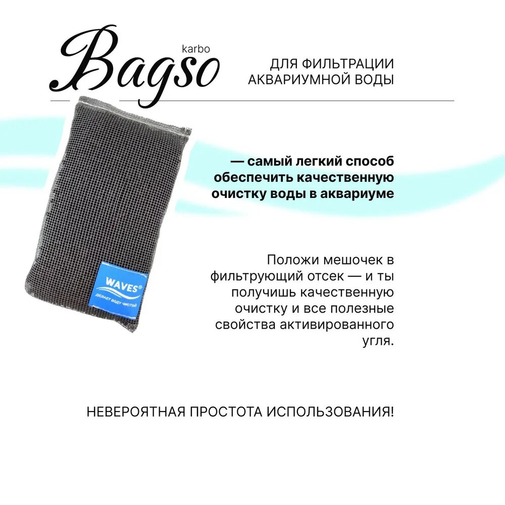WAVES "Bagso karbo" Мешочек из синтепона с активированным углем - наполнитель для аквариумного фильтра, 22х17 см