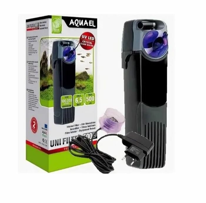 Внутренний фильтр Aquael UNI FILTER UV 500 со стерилизатором, для аквариума 100 - 200 л (500 л/ч, 5.5 Вт)