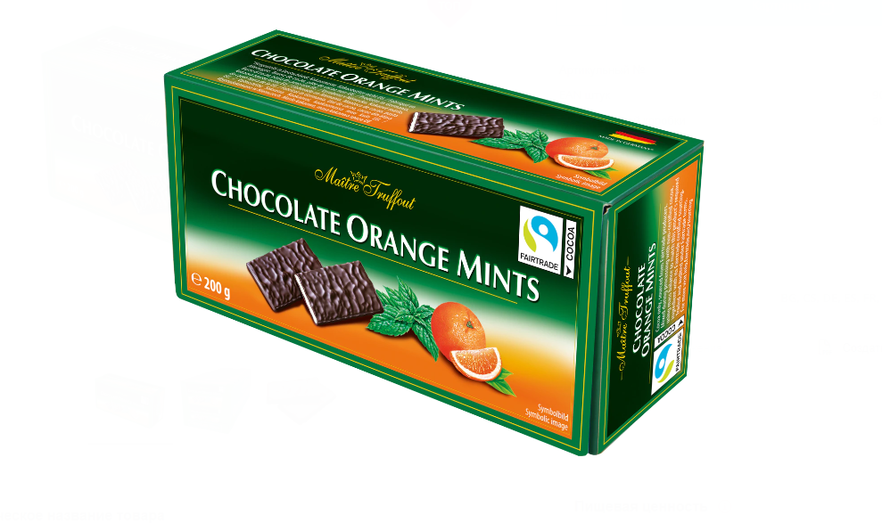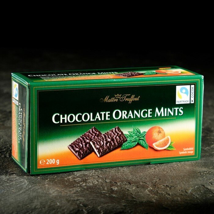Шоколад Maitre Truffout темный с мятной начинкой и апельсиновым вкусом, порционный, 200 г, 20 шт. в уп.