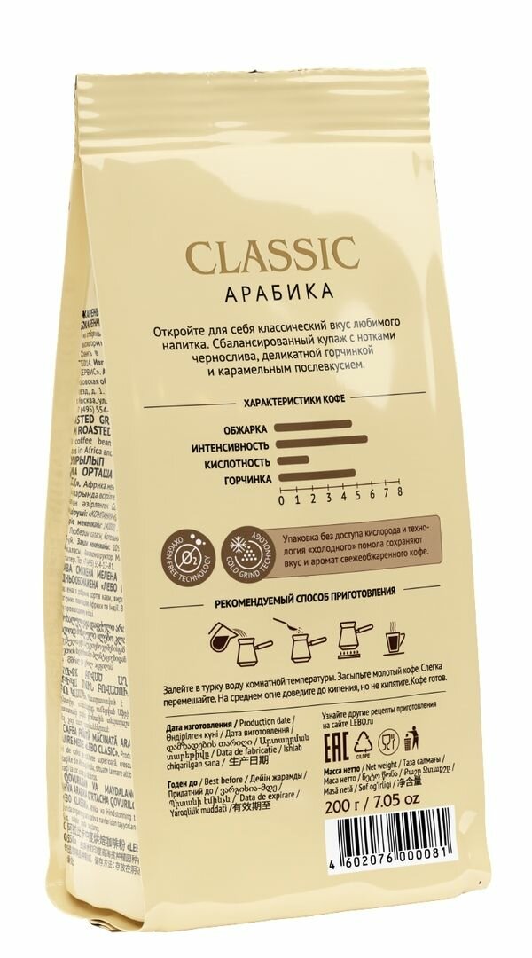 Кофе молотый Lebo Classic Арабика 100% , Приготовление - Турка, 200 г