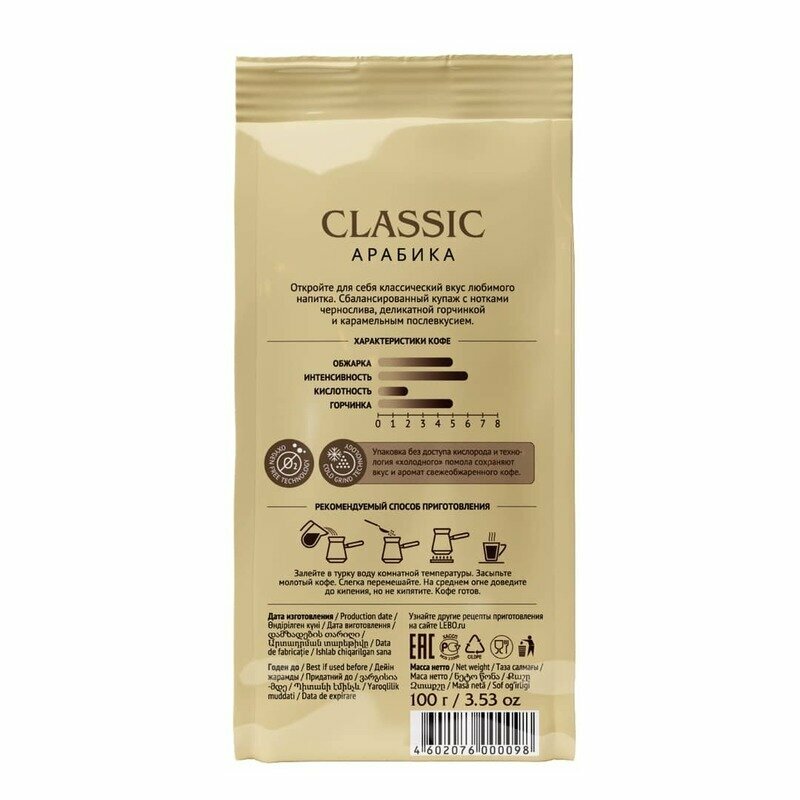 Кофе молотый Lebo Classic Арабика 100% , Приготовление - Турка, 200 г