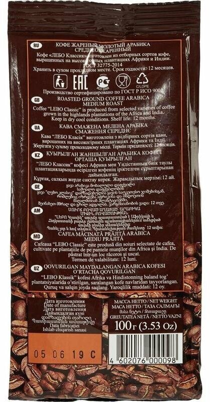 Lebo Кофе молотый Classic,100 г