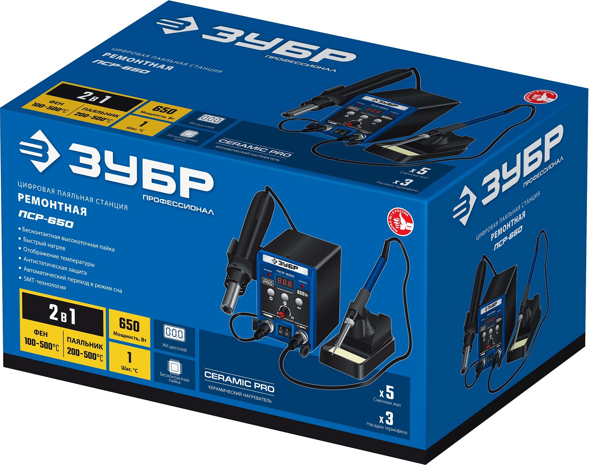 ЗУБР ПСР-650, 2-в-1 ремонтная паяльная станция, 100-500°С, 650 Вт. серия «профессионал» 55427 интересное: