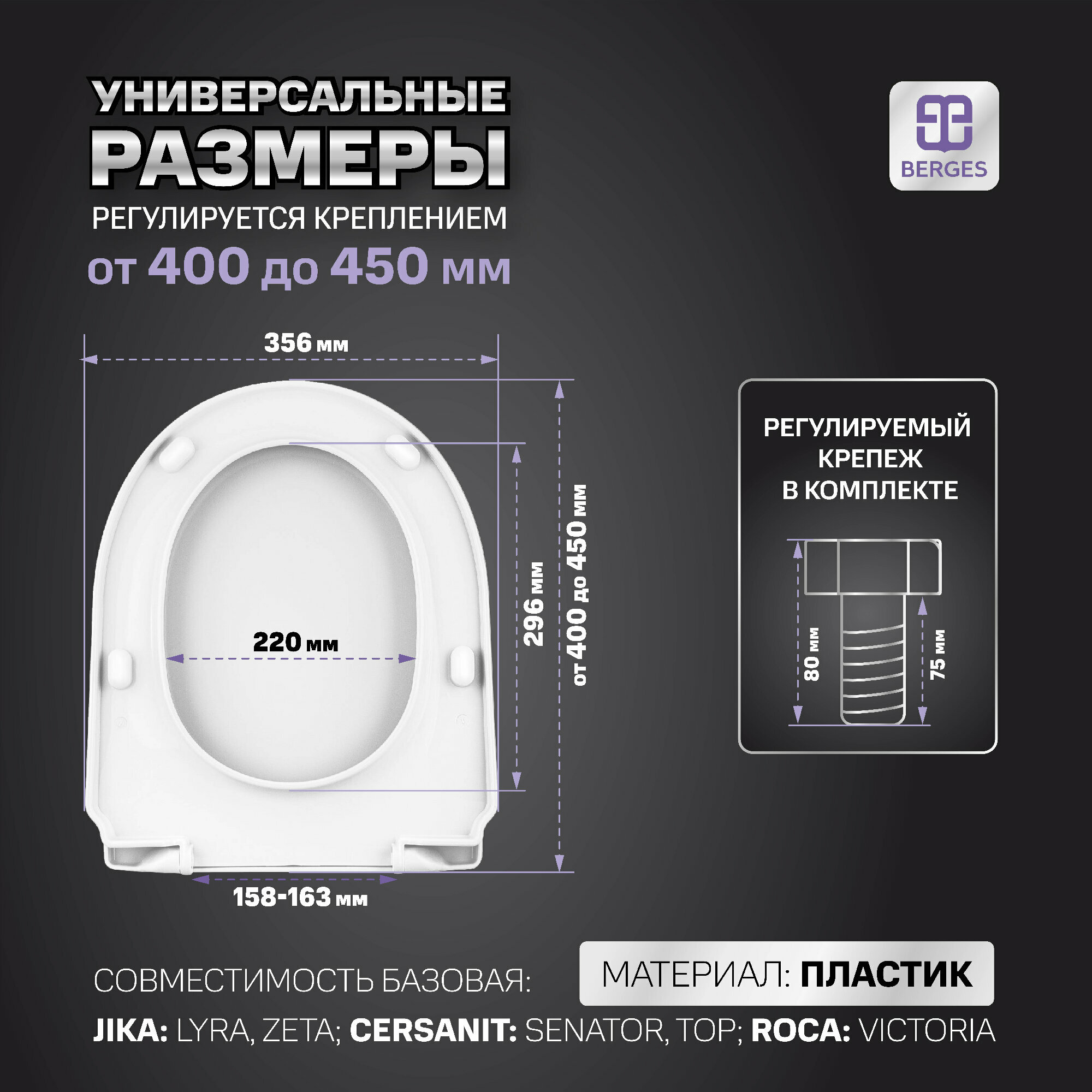 СохранитьСиденье для унитаза BERGES Wasserhaus Nord PP, универсальное, быстросъемное интересное: