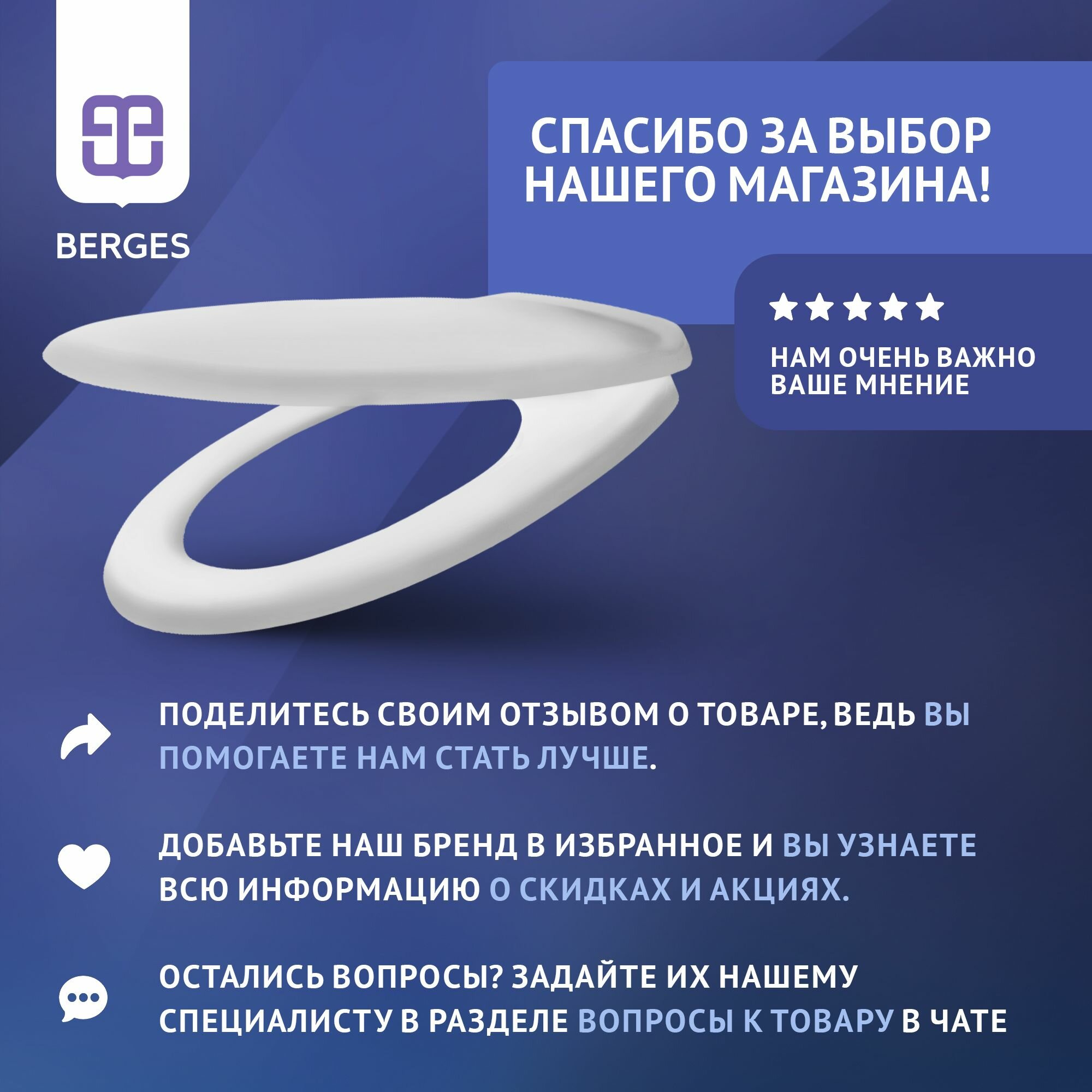 Сиденье для унитаза BERGES с крышкой и креплениями