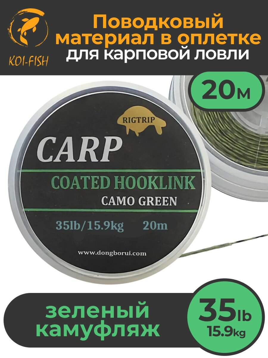 Купить Поводковый материал в оболочке 35LB (15,9 кг), 20м Зелёный камуфляж CAMO GREEN в оплётке для карповой ловли