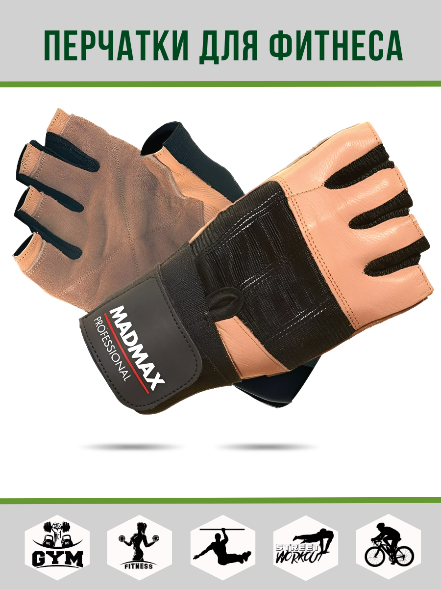 Перчатки с фиксацией запястья MadMax MFG-269 для фитнеса, мужские, натуральная кожа, размер M (арт.2418)