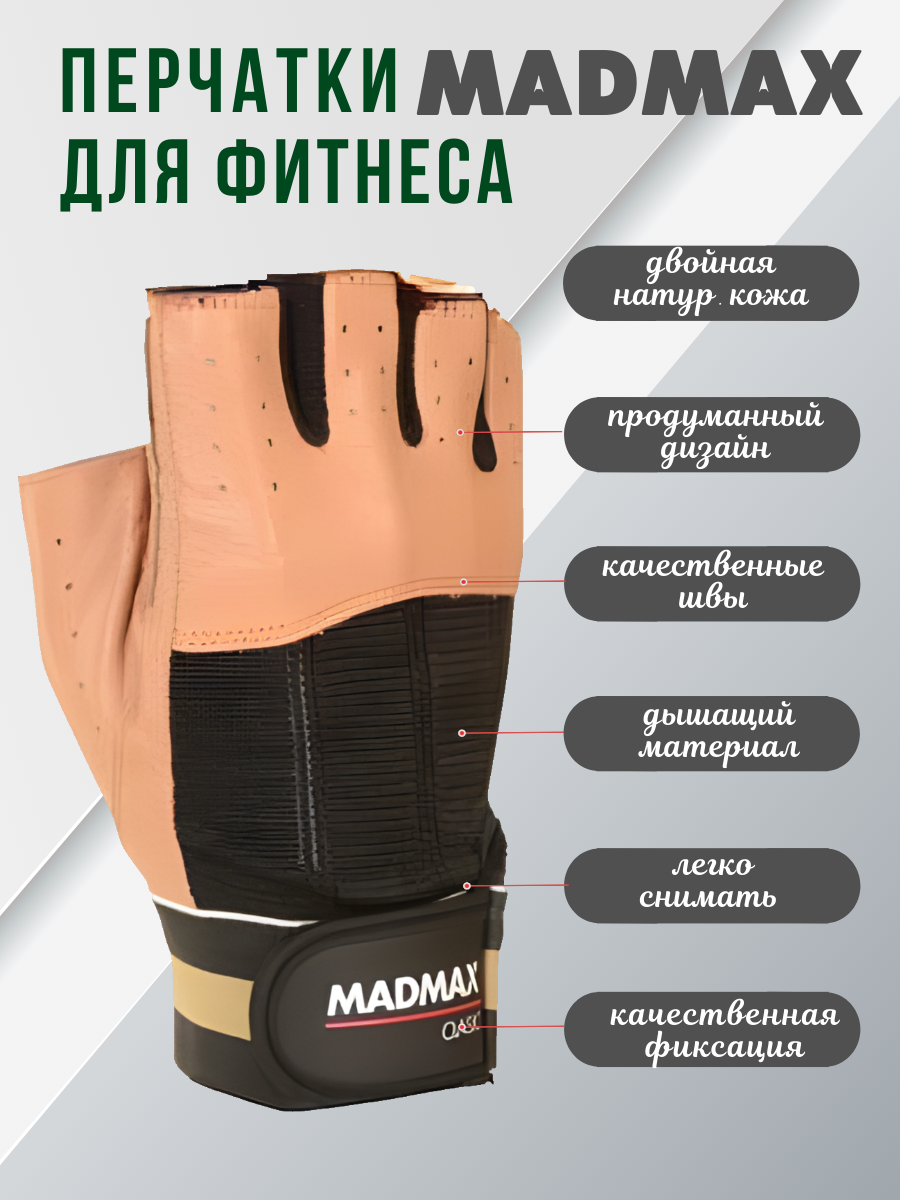 Перчатки MadMax MGF-248 для фитнеса, мужские, натуральная кожа, размер M (арт. 2210)
