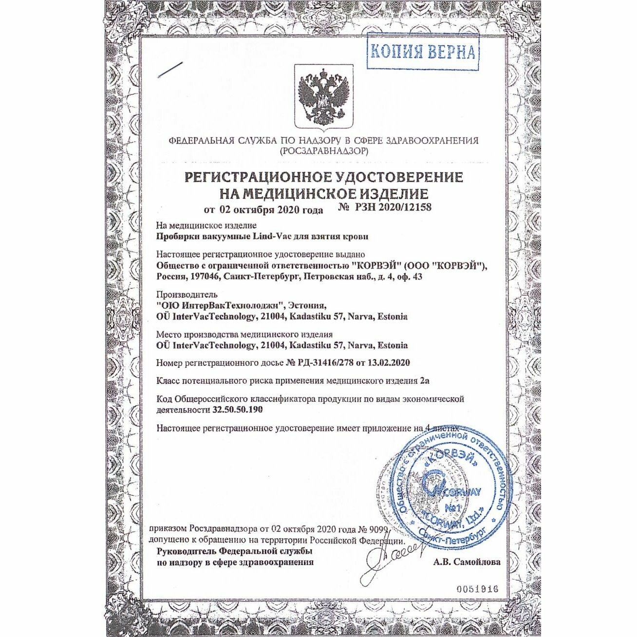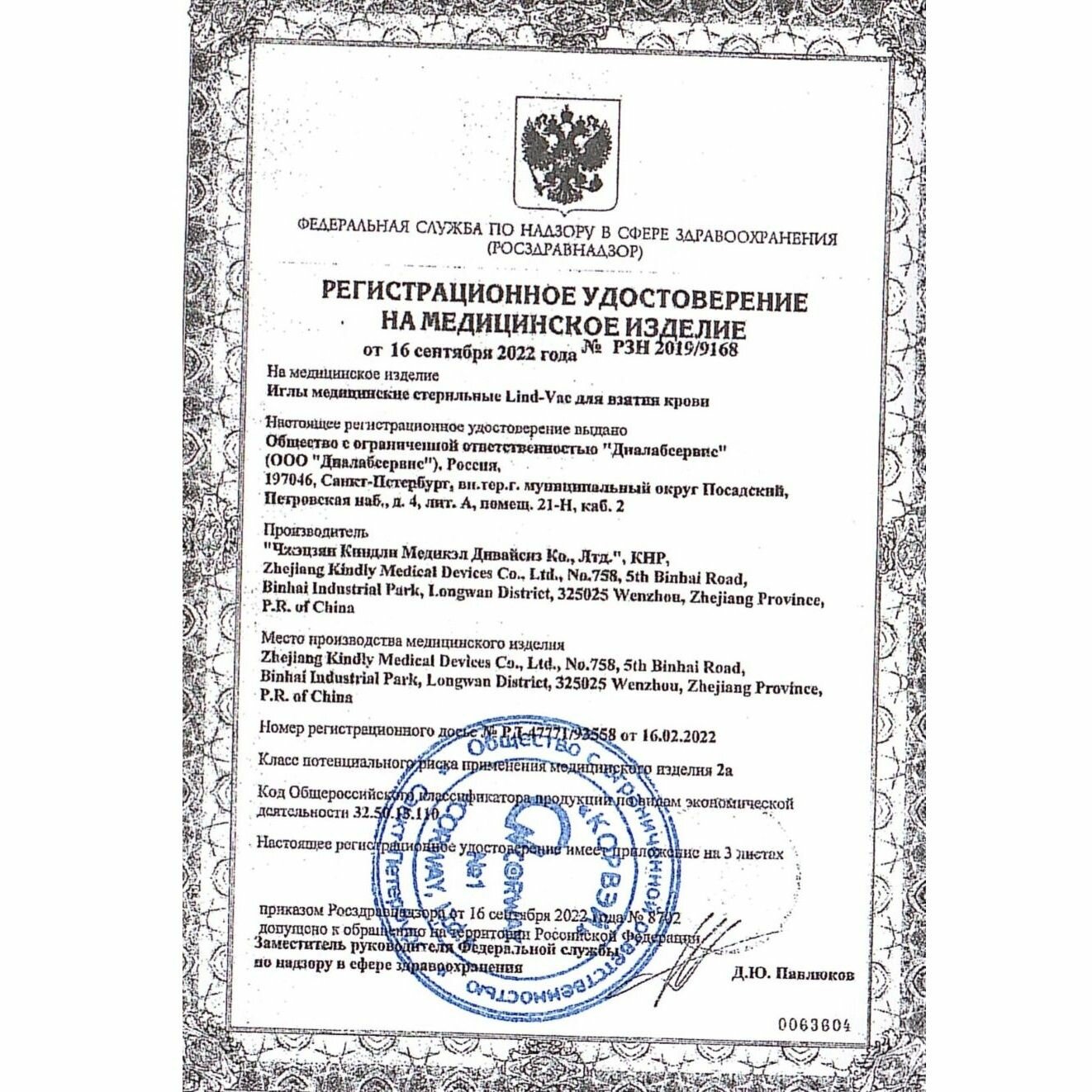 Набор № 9 для плазмолифтинга: Пробирки вакуумные Lind Vac с Na-гепарином и гелем (20 шт), Иглы-бабочки 23g(20 шт), Переходники (20шт)