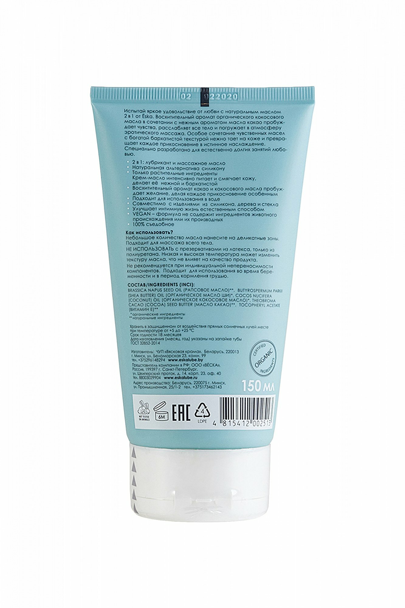Натуральный лубрикант Ёska "2в1 на масляной основе" без вкуса, с ароматом какао и кокоса, для всех видов любви, 75мл.