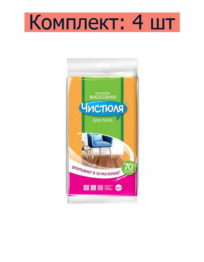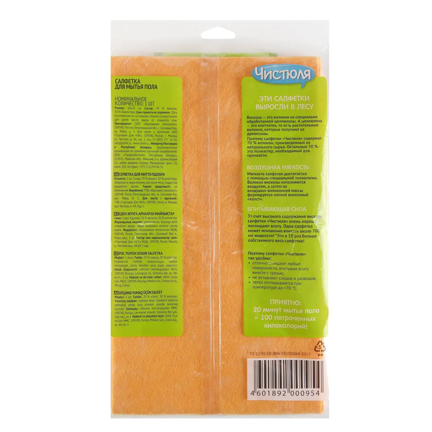 Чистюля Салфетка вискозная для мытья пола, оранжевая, большая, 60х 70 см, 6 упаковки /