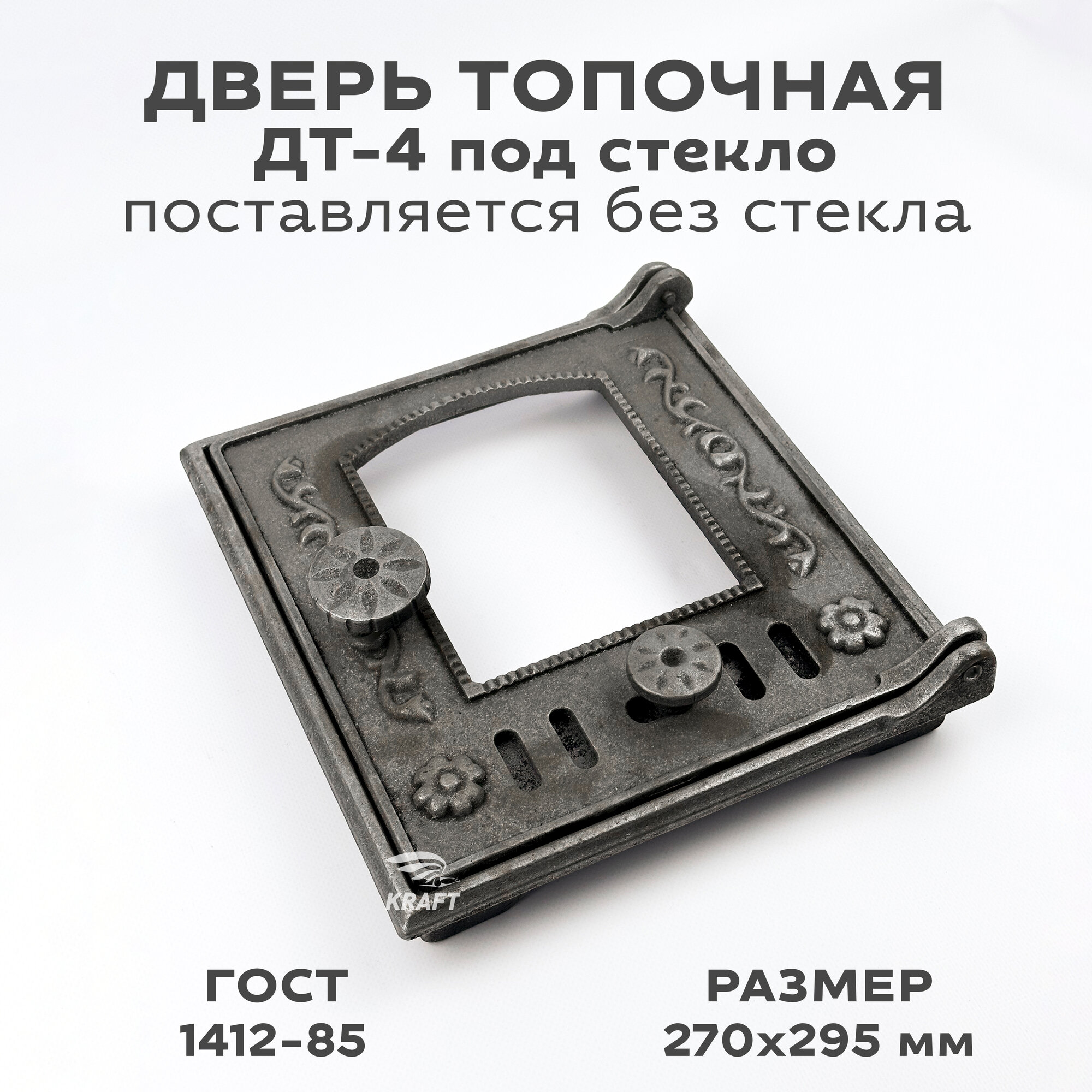 Дверь топочная печная чугунная ДТ-4 под стекло с регулировкой воздуха, размер 270 х 295 мм., дверка топочная, печная из чугуна